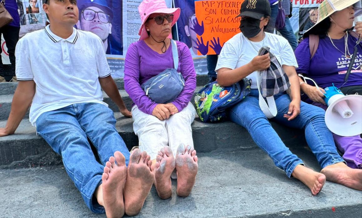 En Tuxtla Gutiérrez, Chiapas, integrantes de la Fundación Karla Velasco y familias víctimas de feminicidio, homicidio y violencia sexual marcharon descalzos el 9 de abril de 2026. La marcha partió del Puente de Colores con destino al Palacio de Gobierno. La temperatura durante la marcha alcanzó los 32 grados centígrados.
